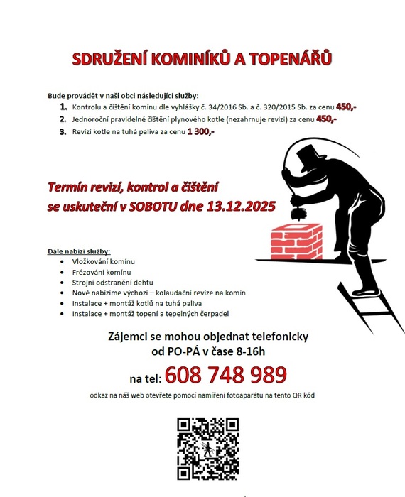 Úvod > Život v obci > Aktuality > Nabídka kominických služeb 13.12.2025