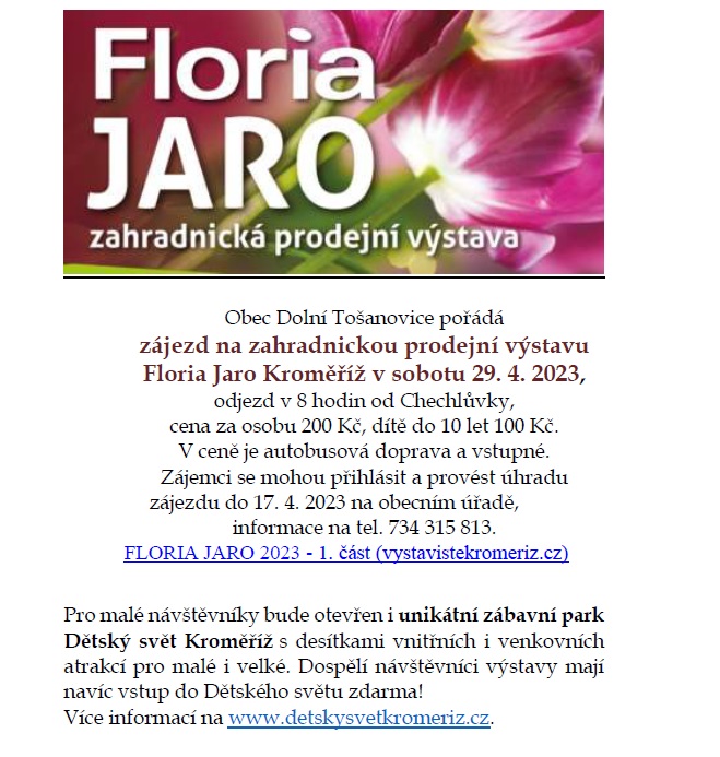 Úvod > Život v obci > Aktuality > Zájezd na Floria Jaro Kroměříž